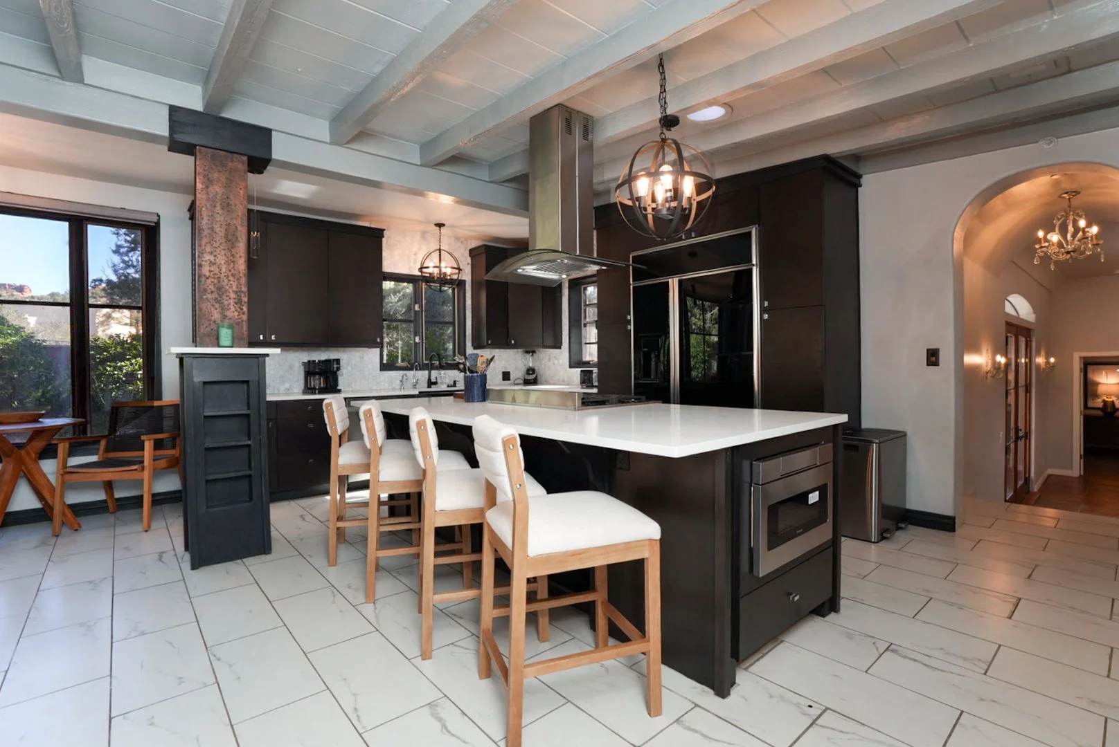 Dry Creek Sunstone Home is a Sun Haven Collection home created for travelers seeking space, quiet, and uninterrupted connection to Sedona’s high-desert environment. Located along Dry Creek Road in West Sedona, the home sits in an elevated residential setting known for expansive horizons, open skies, and proximity to some of the area’s most scenic trail systems.
